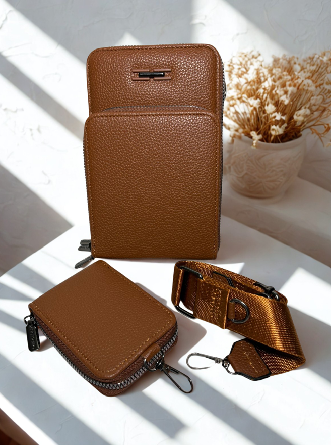 Kit Bolsa + Carteira em Caramelo